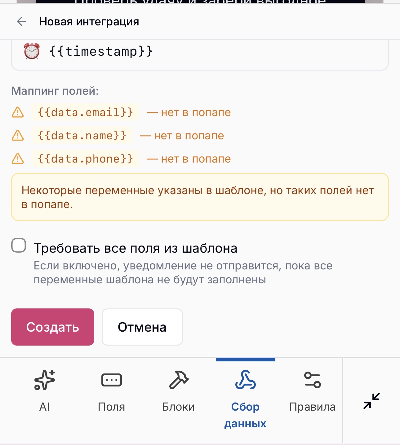Когда посетитель заполняет форму в вашем попапе, зачастую данные нужно куда-то отправить: в CRM для обработки, в Telegram для мгновенного уведомления, в Google Sheets для учёта. Интеграции — это мост между вашим попапом и внешними сервисами.
