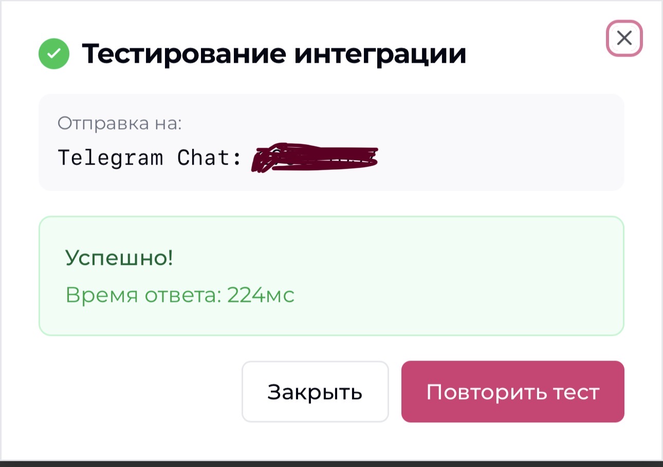 - Проверьте, что данные дошли (в Telegram придёт тестовое сообщение, в CRM создастся тестовая заявка)